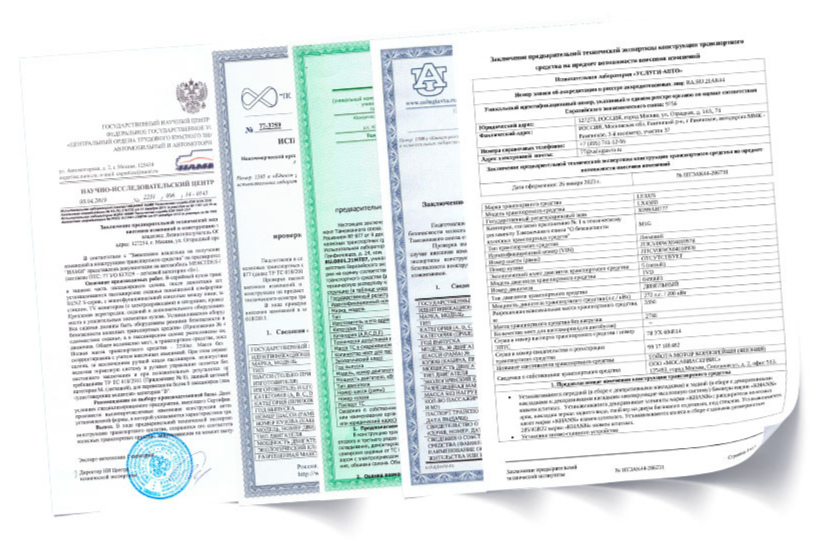 — Заключение предварительной технической экспертизы конструкции транспортного средства на предмет возможности внесения изменений